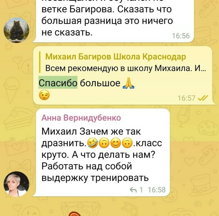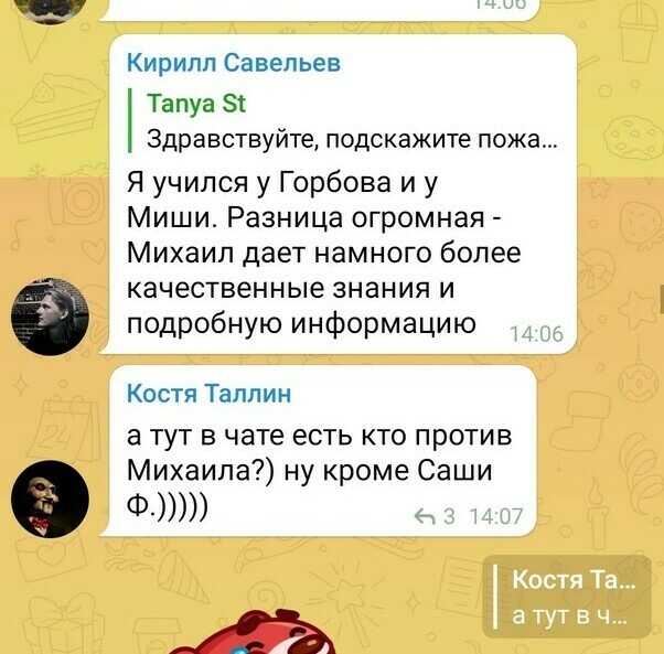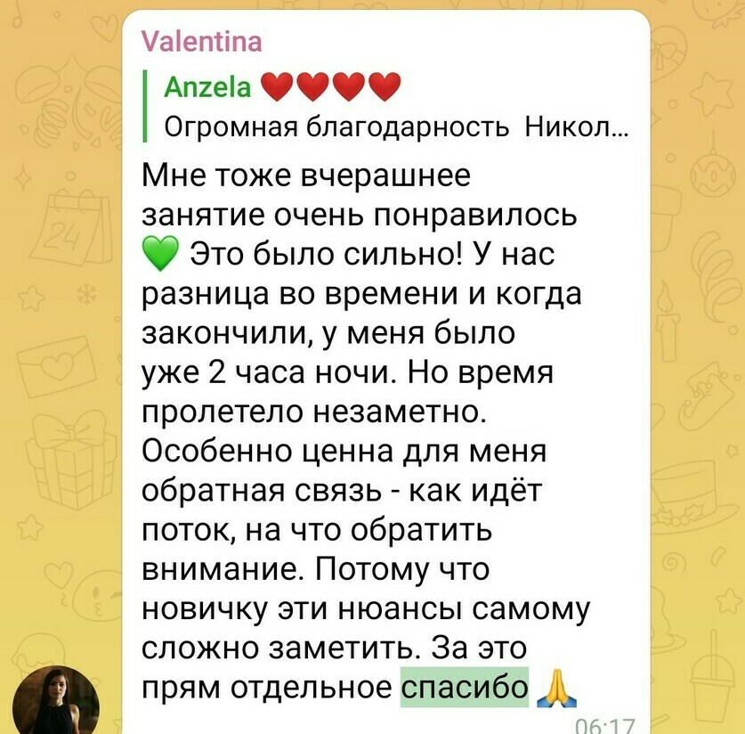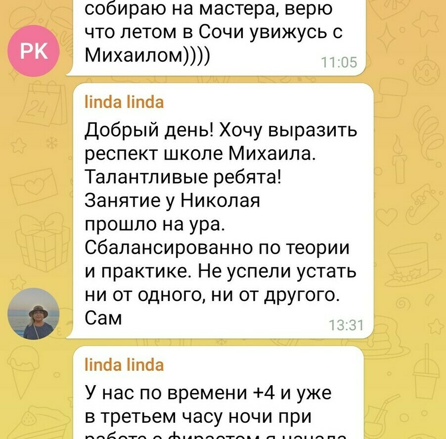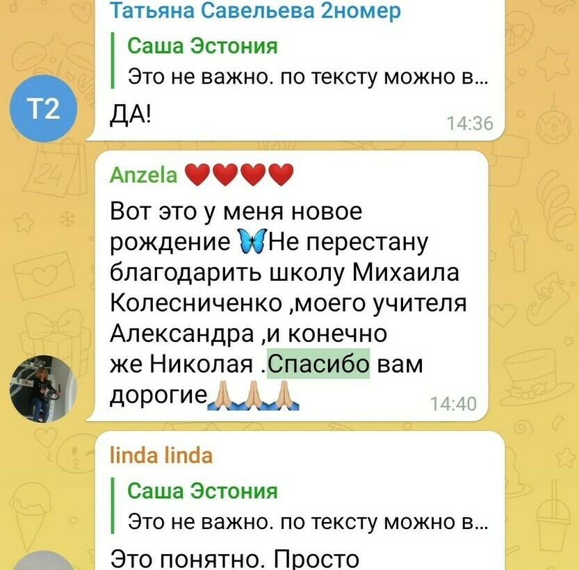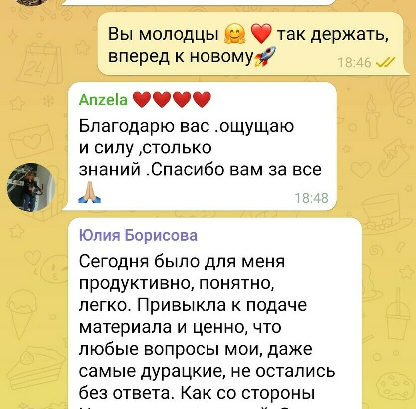 Это малая часть отзывов в чате школы в Telegram. Просто в поиске чата напишите слово "СПАСИБО" и посмотрите, что пишут люди, про занятия, сонастройки, про посленачальное обучение.